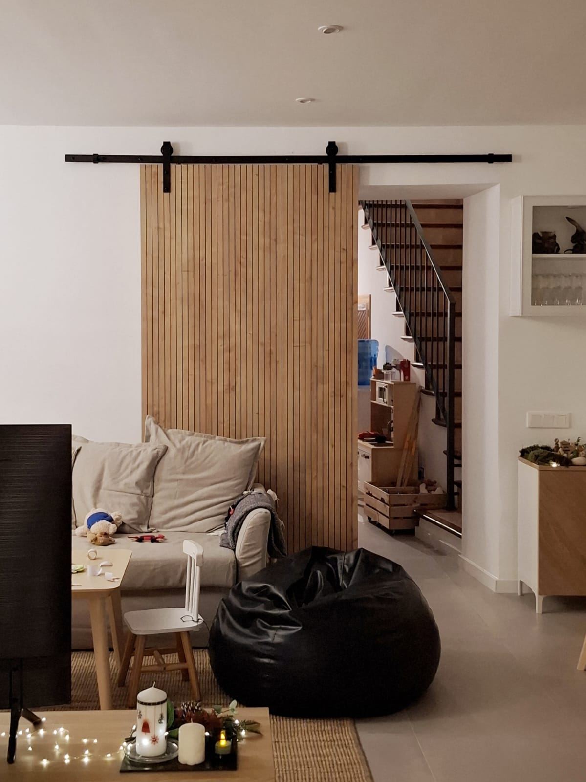 El LISTDOOR lleva la funcionalidad a otro nivel. Este sistema simula listones y actúa como una puerta corredera. Su mecanizado con líneas negras crea un efecto visual impactante, perfecto para separar espacios con estilo.