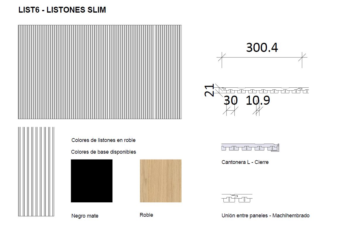 Este modelo de listones slim, es ideal para espacios con poco espacio debido a su formato de poco grosor.