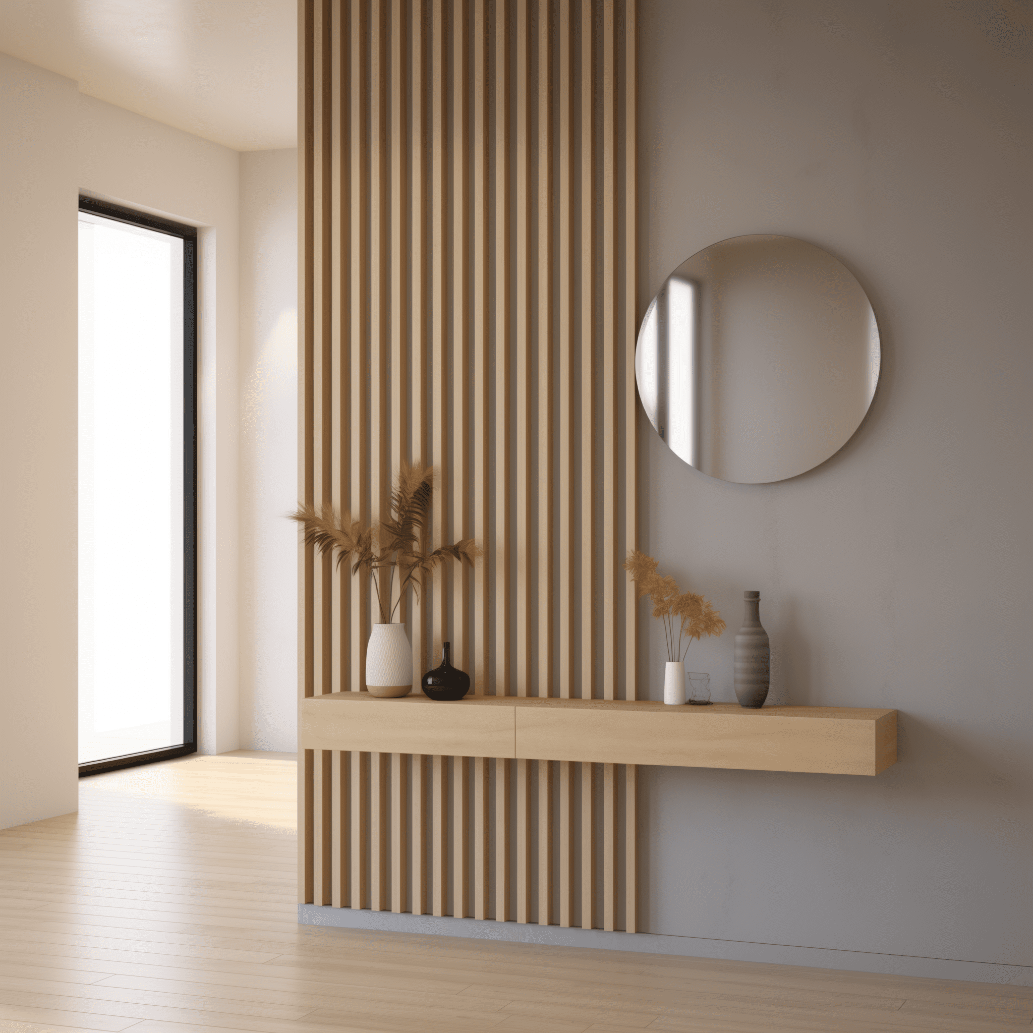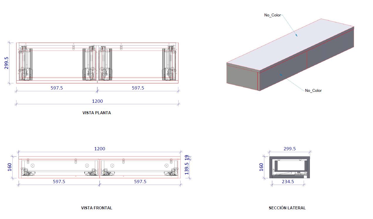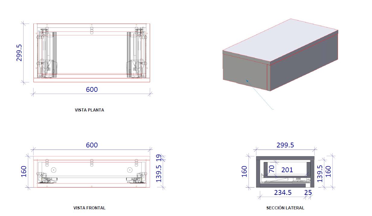 Cónsola flotante de un cajón con guías de extracción total.