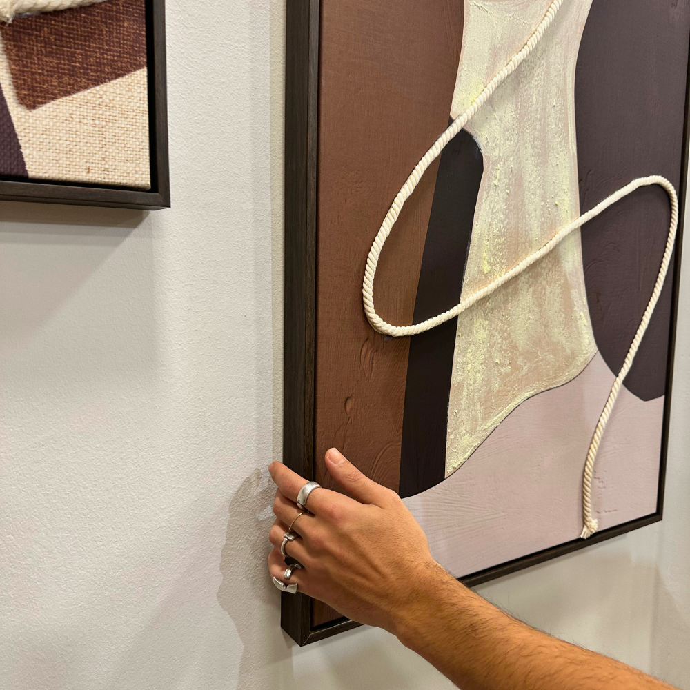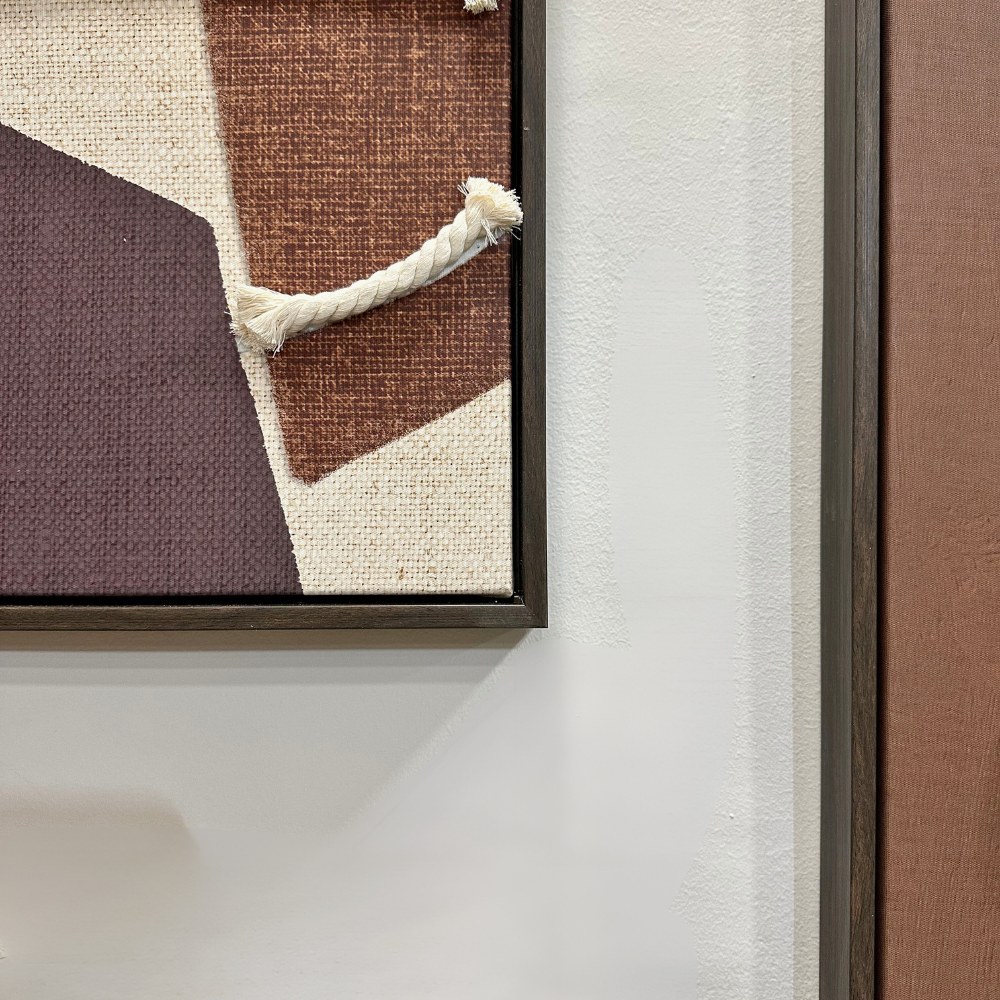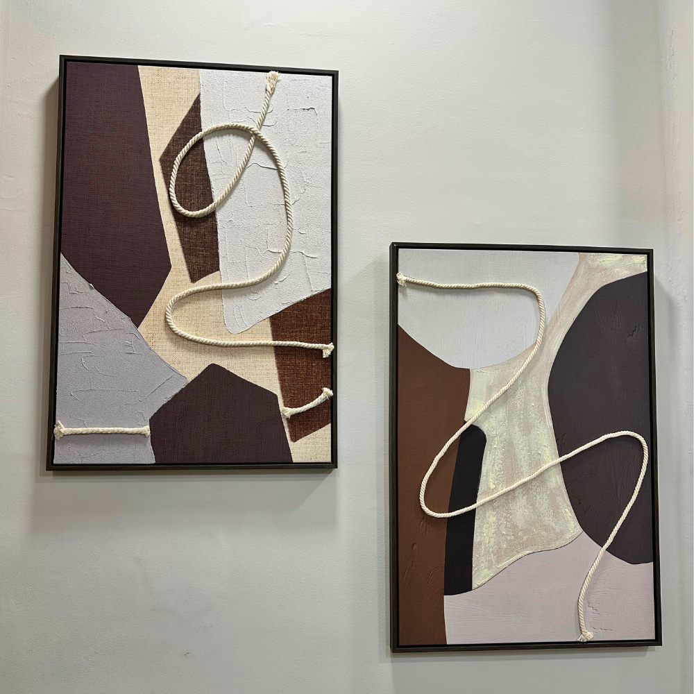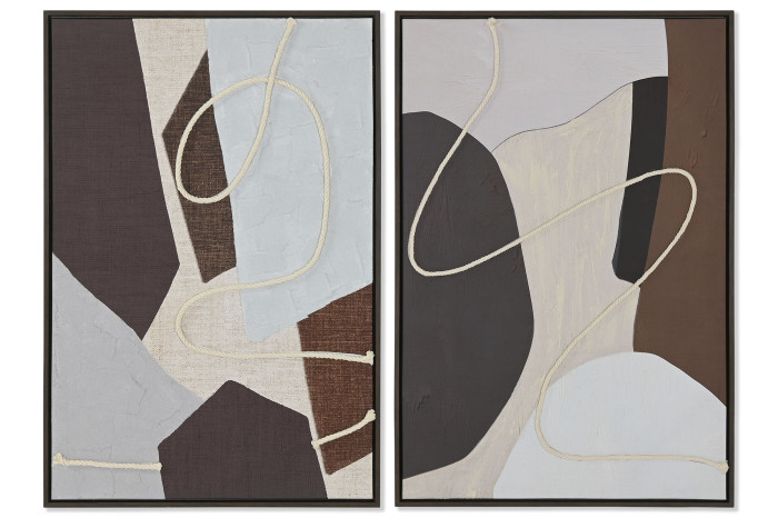 Cuadro de dos piezas de lienzo decorativo de marrones con cuerda relieve natural con un estilo urbano abstracto.