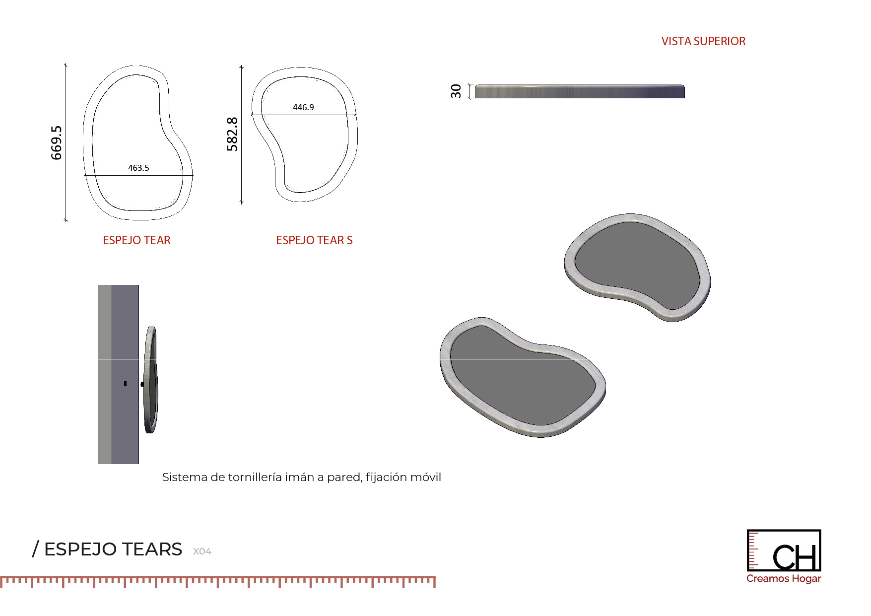 Espejo Nature Tears, un espejo con forma de lágrima enmarcado con un marco en efecto microcemento, un diseño texturizado en efecto nature. Disponible con espejo fumé o plata. Un diseño único con un sistema de fijación giratorio. Aporta el toqué de distinción y diseño a tu hogar, rompe un espacio aburrido con este espejo.