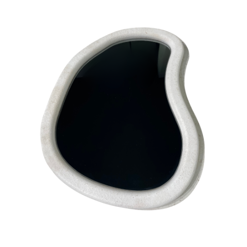 Set espejo Nature Tears (2 tallas), dos espejos con formas de lágrima enmarcados con un marco en efecto microcemento, un diseño texturizado en efecto nature con espejo plata. Un diseño único con un sistema de fijación giratorio.