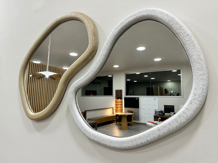 Set de espejos efecto Nature color canapa y blanco con espejo gris plata.