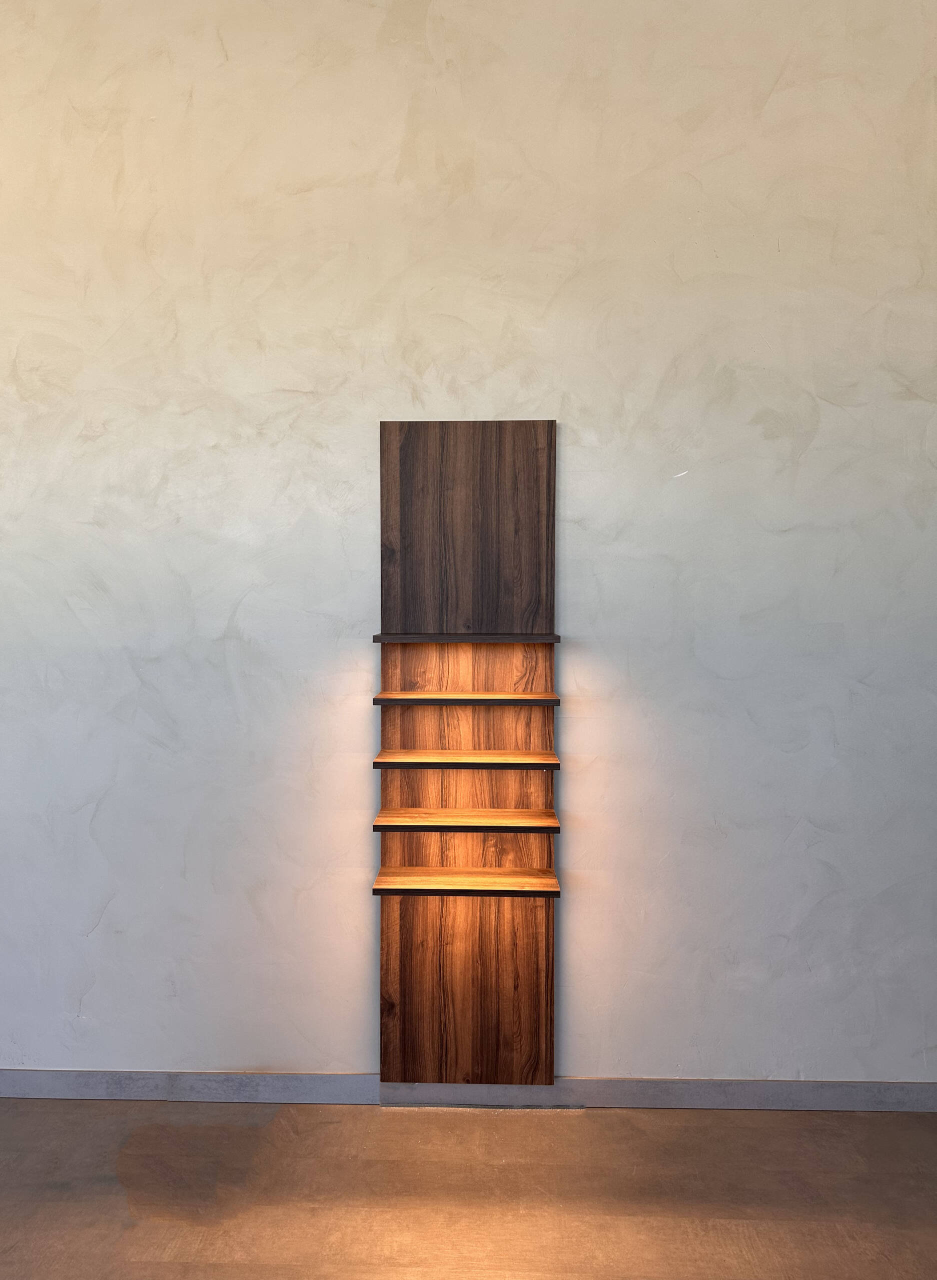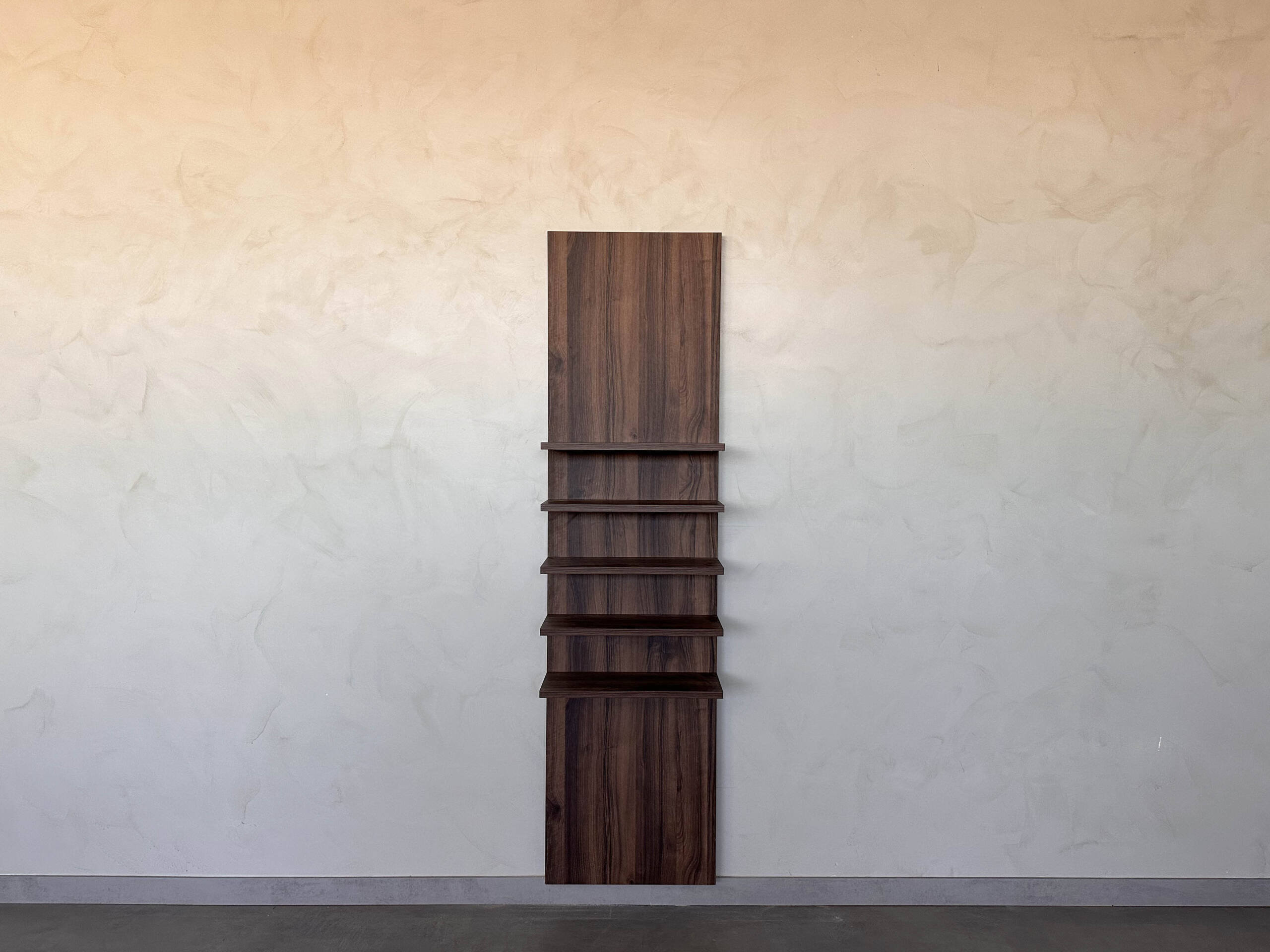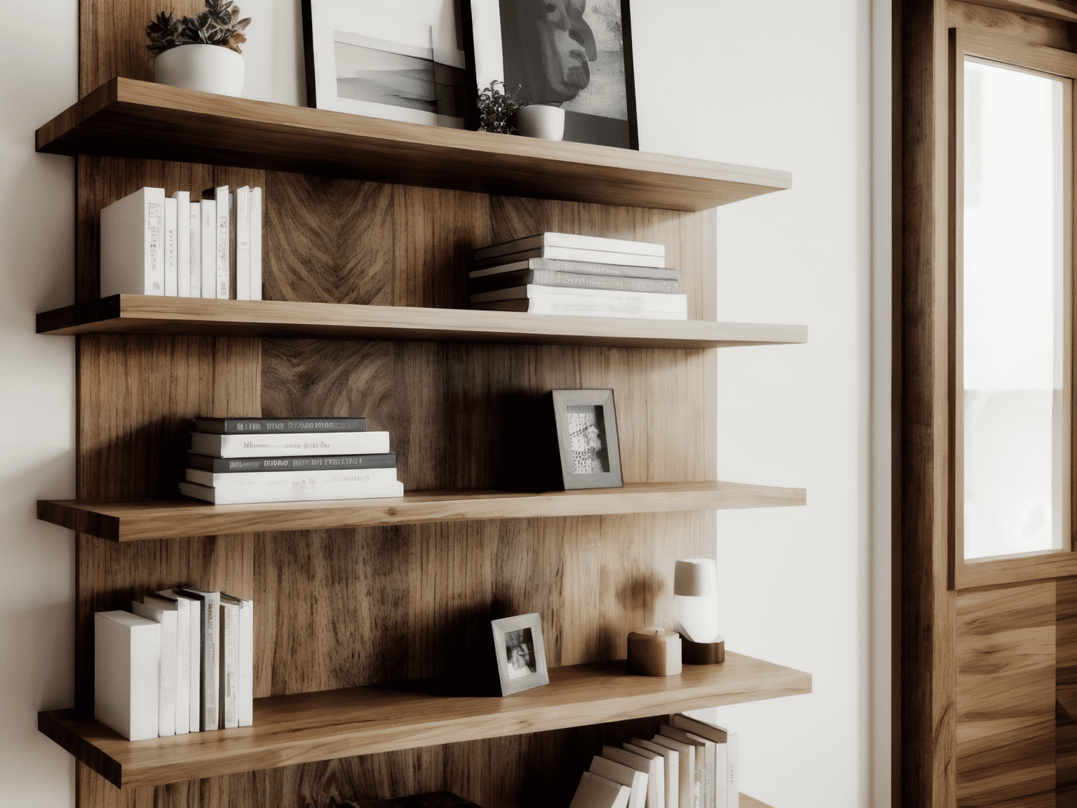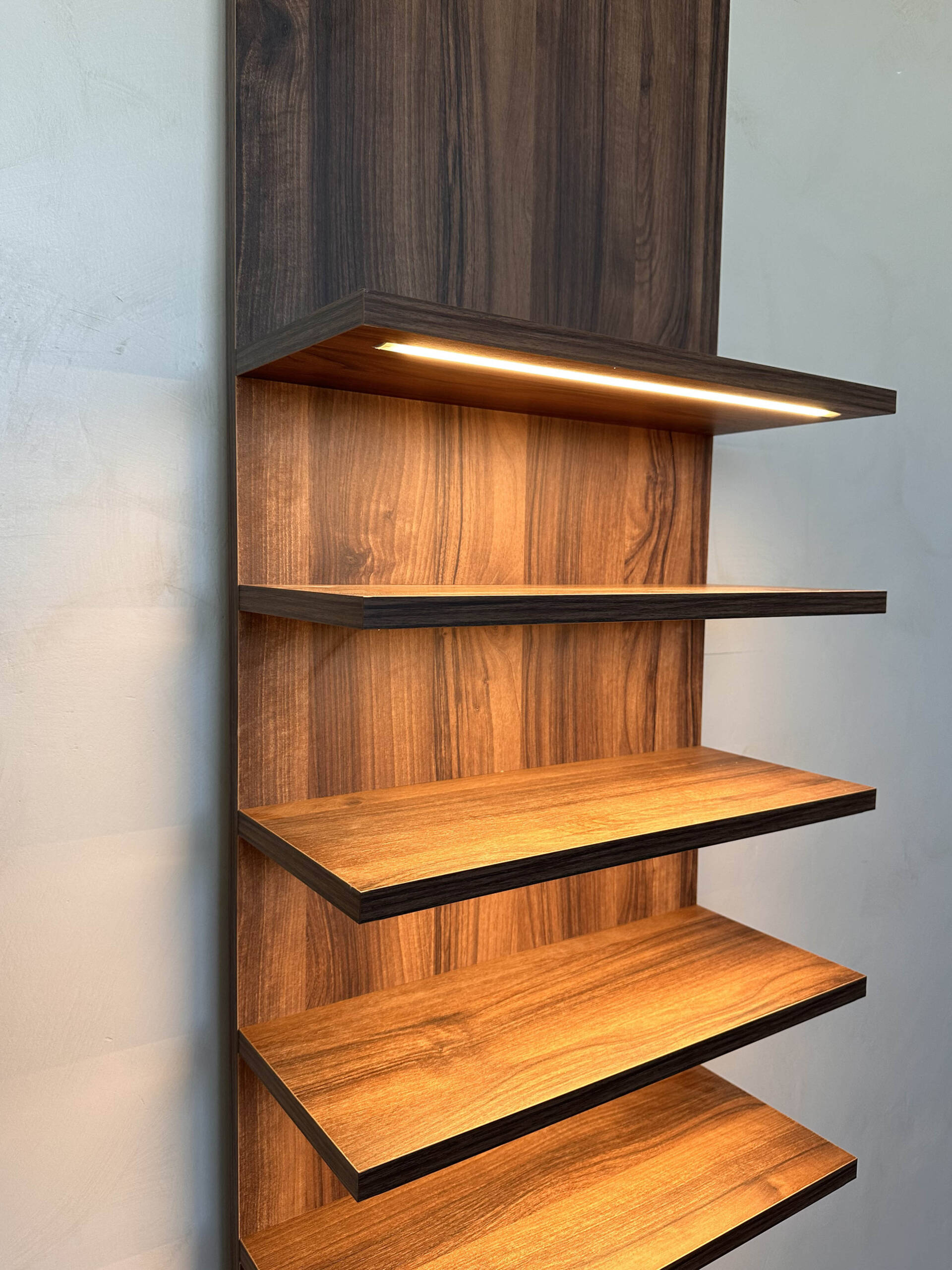 Una estantería con trasera y baldas flotantes a medida para dar un toque minimalista al hogar.