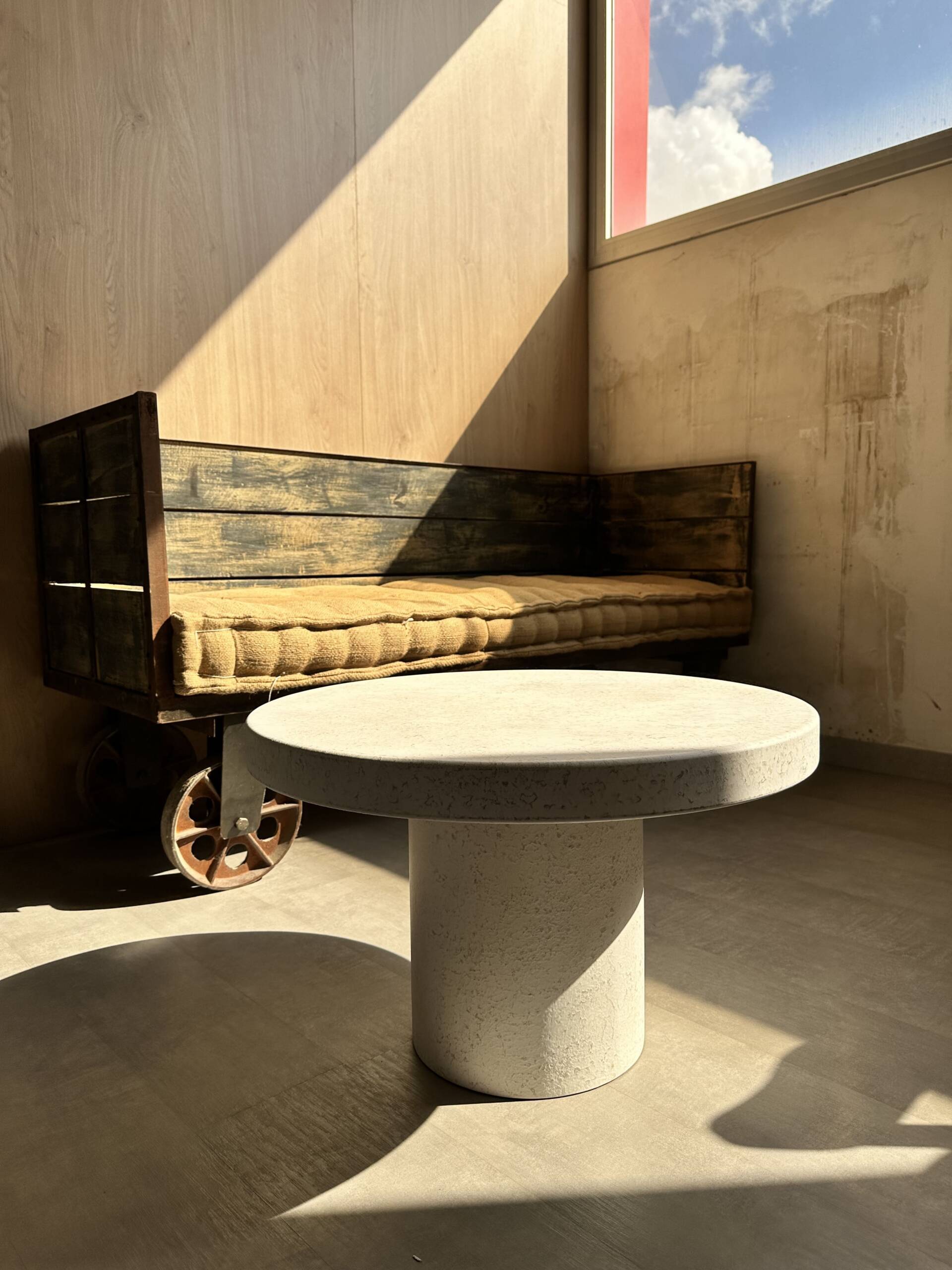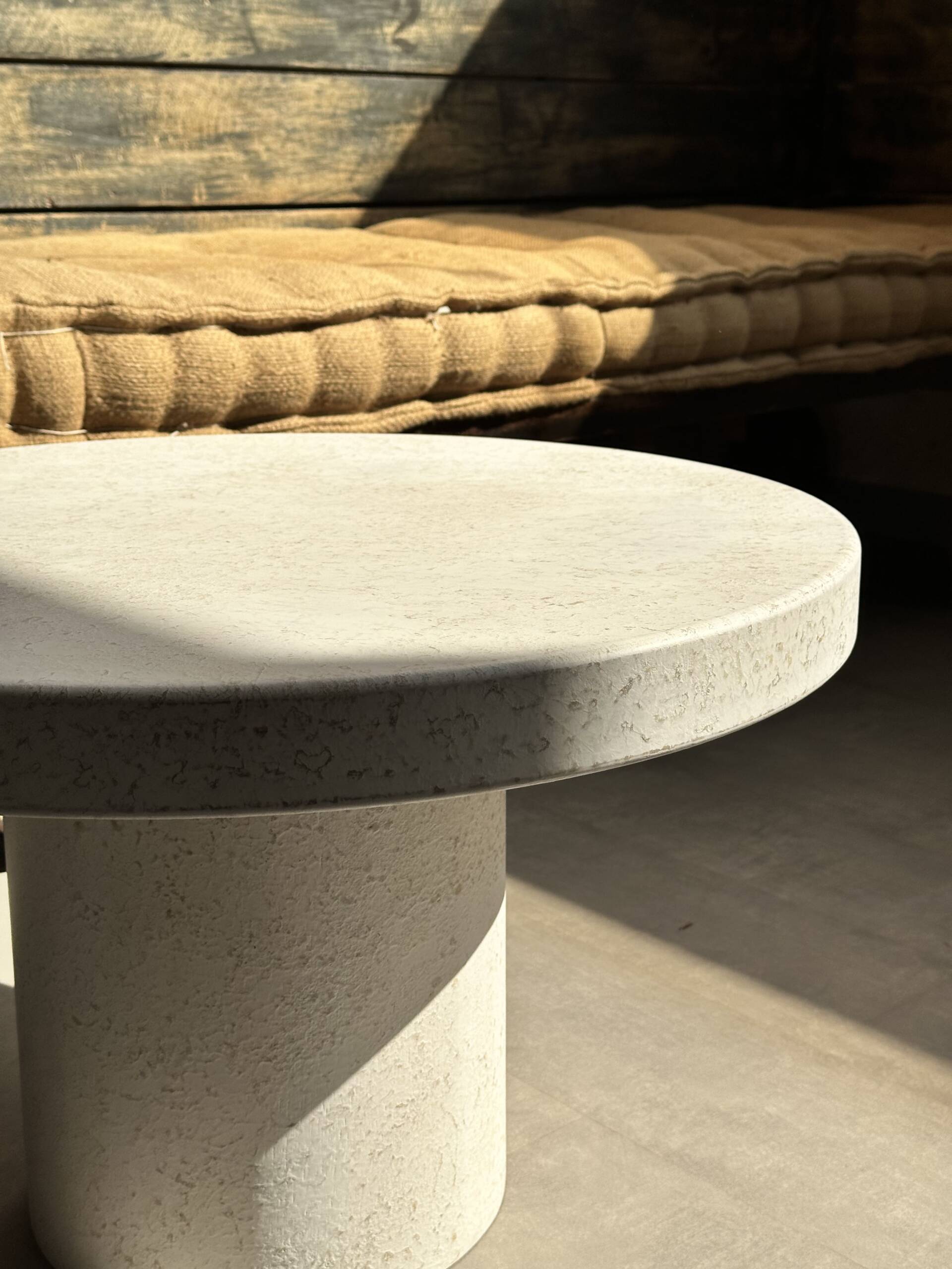 Mesa de centro Nature de 70 cm: Diseño exclusivo, hecho con materiales sostenibles que simulan el microcemento. Su textura única y estilo moderno la hacen ideal para decorar salones o espacios interiores. Esta mesa redonda es perfecta como mesita auxiliar, combinando funcionalidad y estética en cualquier ambiente. Precio disponible en edición limitada.