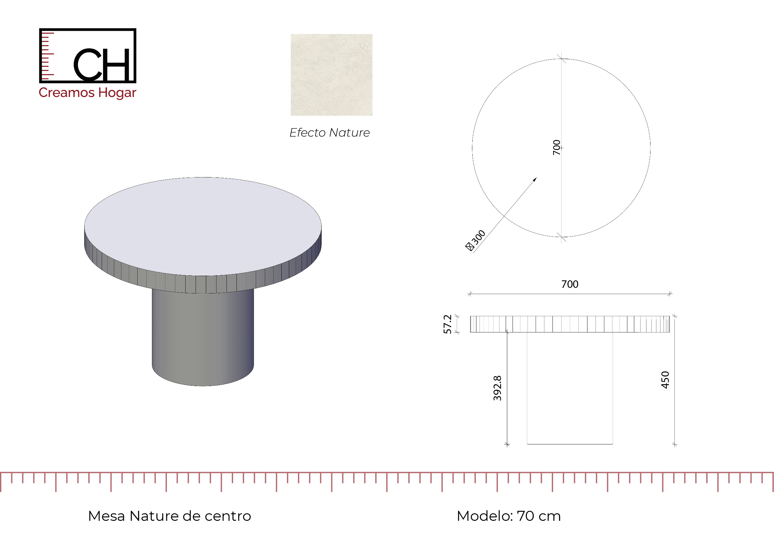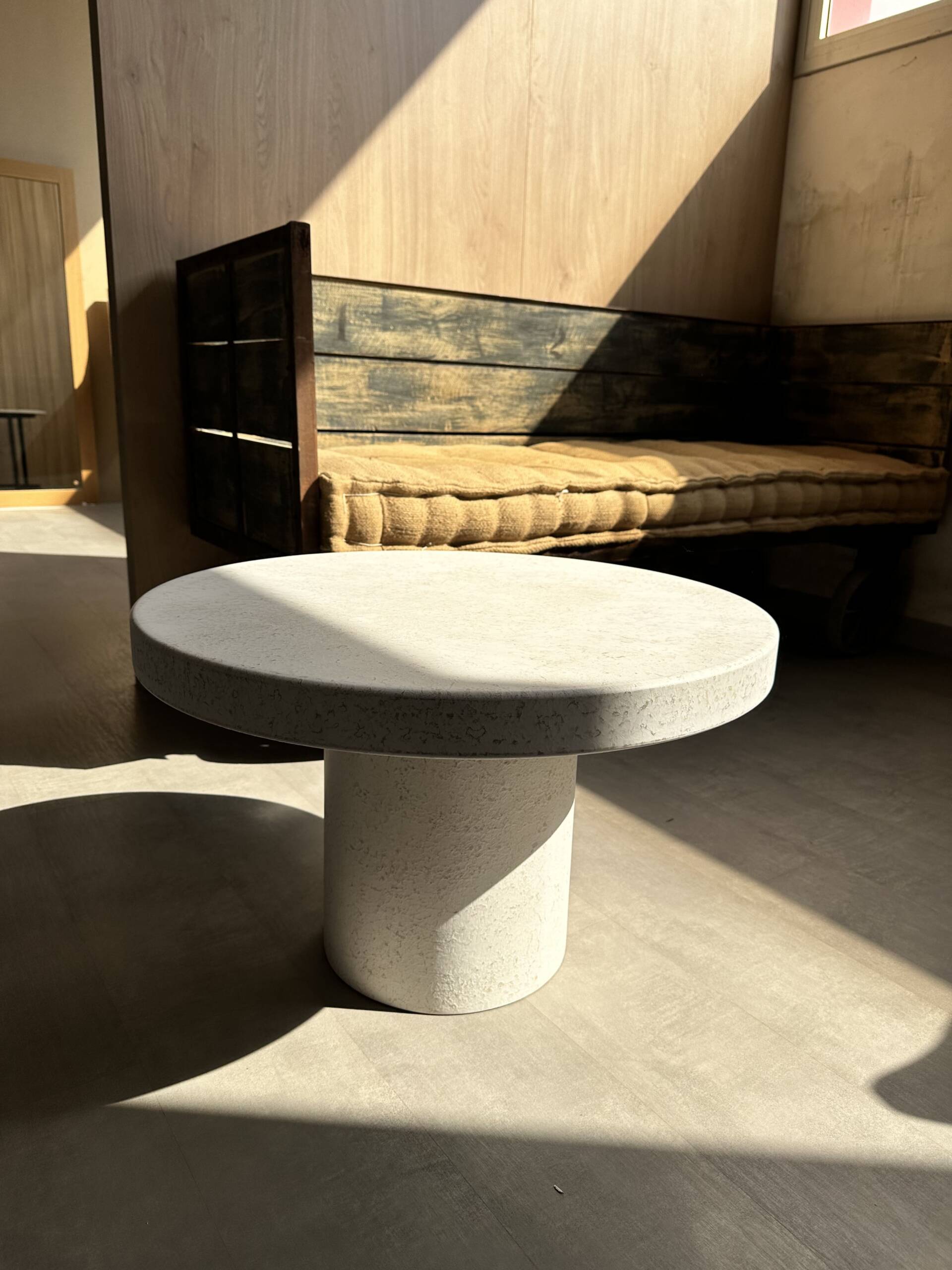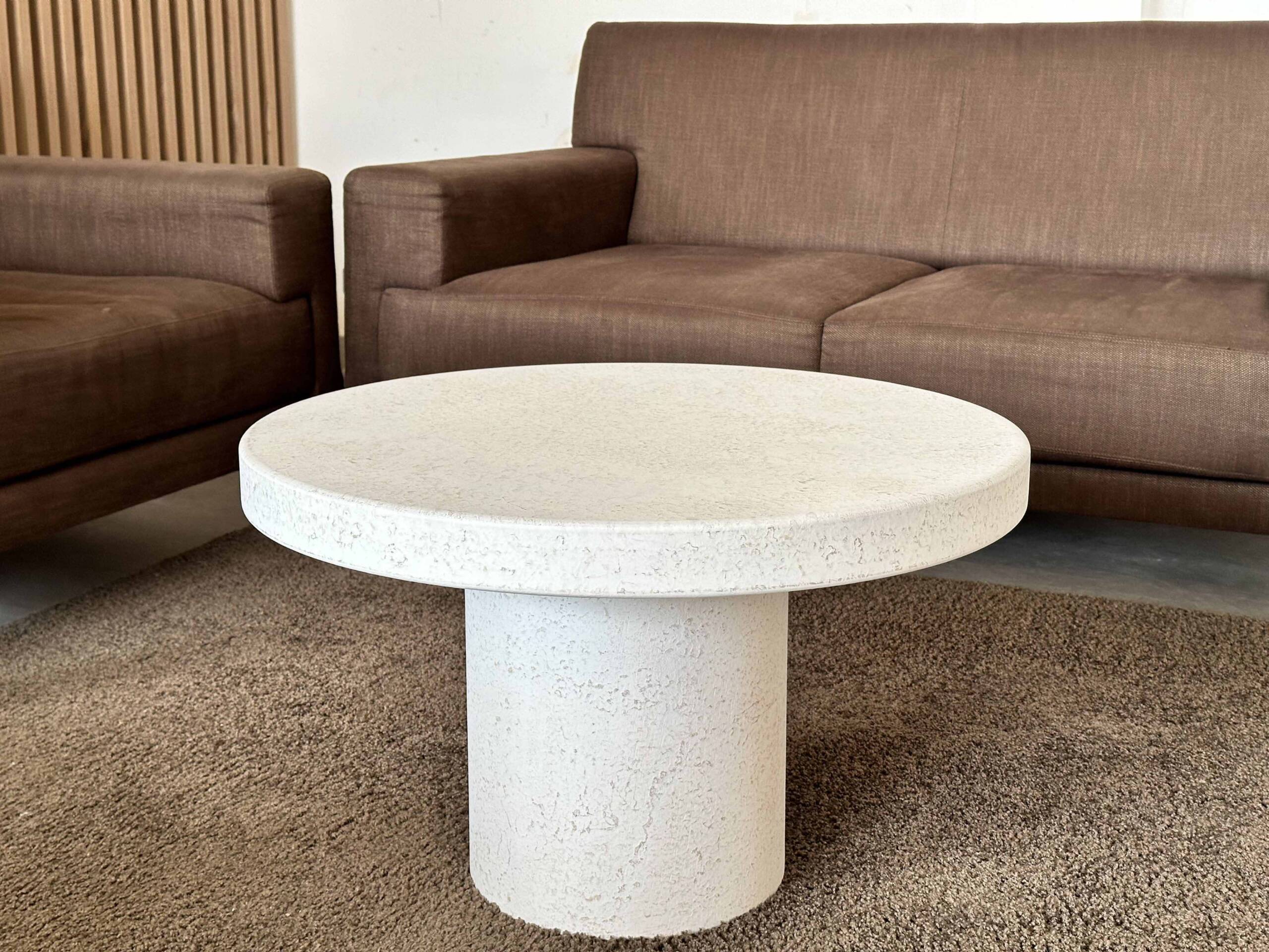 Mesa de centro Nature de 70 cm: Diseño exclusivo, hecho con materiales sostenibles que simulan el microcemento. Su textura única y estilo moderno la hacen ideal para decorar salones o espacios interiores. Esta mesa redonda es perfecta como mesita auxiliar, combinando funcionalidad y estética en cualquier ambiente. Precio disponible en edición limitada.